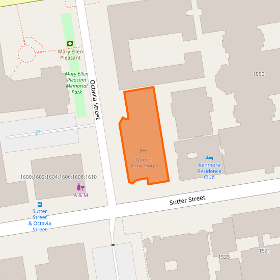 Address : Queen Anne Hotel, Sutter Street, Western Addition, San Francisco, CAL Fire Northern Region, California, US-CA, 94109, United States